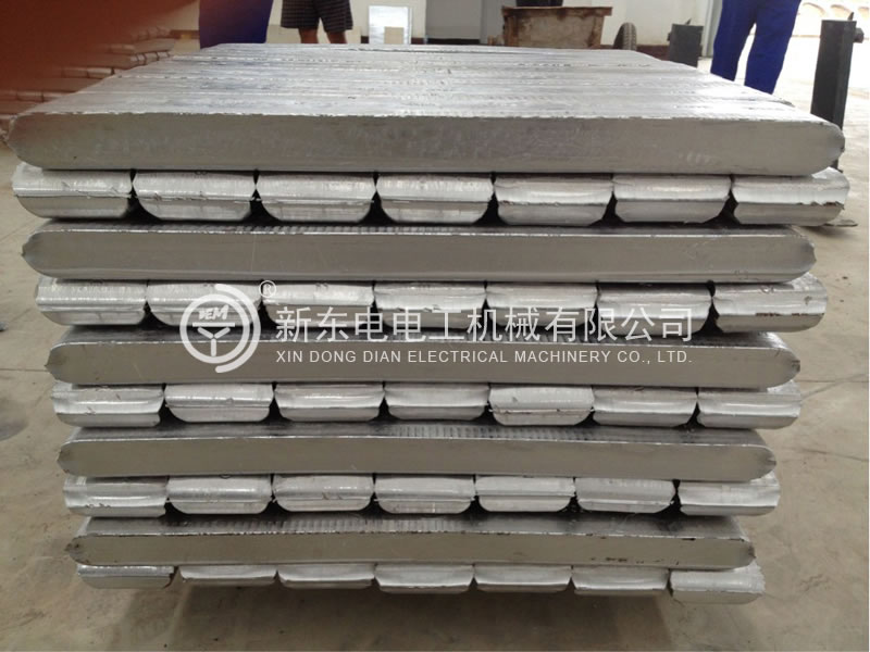 結(jié)晶輪上已凝固了的鑄錠由剔錠器剔出,并沿引橋人工送出,壓緊輪裝置將鋼帶緊壓在結(jié)晶輪上,以防鋁金屬液體外泄,導(dǎo)輪裝置用以調(diào)整和改變鋼帶的走向。鋼帶的張力可以通過漲緊輪裝置進(jìn)行調(diào)節(jié),以保持一定的張力。為了便于鋁鑄錠脫模,連鑄機還備有鋼帶涂油裝置。由于整個過程都是連續(xù)進(jìn)行的,因此可以得到大長度的鑄錠。